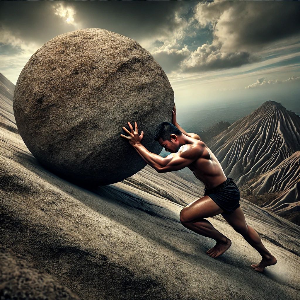 Apa yang terjadi jika hidup ini seperti mendorong batu besar ke puncak gunung hanya untuk melihatnya jatuh kembali, dan kita harus mengulanginya selamanya? Apakah kita akan menyerah? Marah? Atau justru menemukan kebahagiaan dalam absurditas ini? Albert Camus, seorang filsuf eksistensialis Prancis, menggunakan mitos Sisyphus untuk menjelaskan bagaimana manusia menghadapi kehidupan yang tampaknya tidak memiliki makna. Dalam esainya Le Mythe de Sisyphe (1942), ia menutup pemikirannya dengan kalimat terkenal: